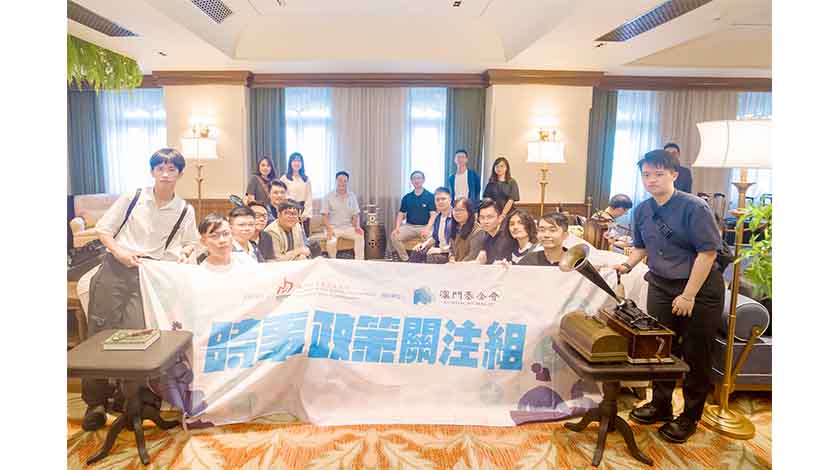 在參觀後的交流環節,周永豪首先感謝蕭主席親自向青年朋友介紹新中央酒店的活化工作,在沿途的介紹中感受到活化團隊傾注在新中央酒店的心血,相信新中央酒店將會再次成為亮眼的歷史地標。副理事長施冠雄發言時表示修繕及活化歷史建築物是城市發展的必做題。酒店建築物具逾百年歷史,活化工作充滿挑戰,對於工程團隊自主研發的靜態鑽椿工法加固現有建築結構,讓酒店煥發活力感到興奮。他期望新中央酒店案例鼓勵更多歷史建築活化項目,深化澳門歷史文化底蘊,擦亮澳門歷史名城金名片。