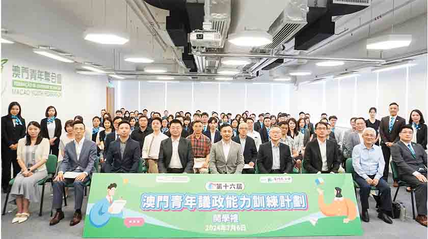 【特訊】由澳門青年聯合會主辦,澳門基金會贊助的第十六屆澳門青年議政能力訓練計劃(下稱“青年議政”)於7月6日下午在澳青聯辦事處舉行開學禮。教青局副局長黃嘉祺、澳門中聯辦教青部副處長周權、澳區全國人大代表崔世平、澳門青聯理事長黃家倫以及社會各界嘉賓代表出席。