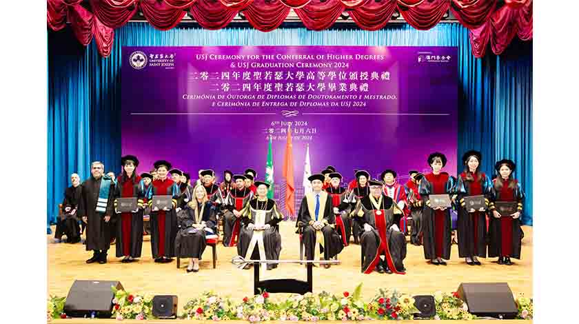 【特訊】澳門聖若瑟大學(聖大)於 2024 年 7 月 6 日在青洲校區花地瑪百年顯現紀念堂舉行了高等學位頒授典禮及畢業典禮,共分為三個場次頒授博士和碩士學位、學士學位及學位後教育文憑(PGDE)。本年度聖大畢業生共頒授 8 名博士學位畢業生、95 名碩士學位畢業生、105 名學士學位畢業生、6 名副學士畢業生及 167 名教育研究生文憑(PGDE)畢業生。