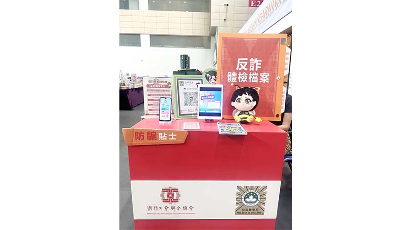 為了進一步提高居民預防電話及網絡詐騙的意識,司法警察局與工聯總會持續合作,日前先後於工聯台山社區中心、工聯筷子基家庭及社區服務中心,以及“澳門書市嘉年華”內的工聯展位,向公眾展示「反詐專家體驗館」,並透過模擬騙案的手機互動體驗,讓居民了解反詐資訊,提高居民的防罪意識。