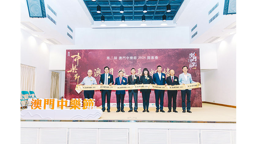 澳門中聯辦宣文部殷汝濤副部長、澳門基金會行政委員黎振強、文化局澳門演藝學院陳理理院長、澳門街坊總會聯合總會理事長陳家良、中華文化聯誼會理事長郭敬文、澳門長虹音樂會永遠名譽會長吳仕明及名譽會長曹錦泉出席開幕典禮,一眾嘉賓在會長杜存忠陪同下進行剪彩儀式,「第二屆 澳門中樂節.2024」正式開鑼。