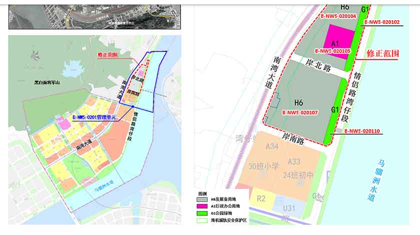 珠海市自然資源局本月初對一幅規劃作珠海出入境邊防檢查總站及周邊用地(珠海香洲區洪保十片區B-NW5-0201管理單元)的控制性詳細規劃進行修正批前公示。