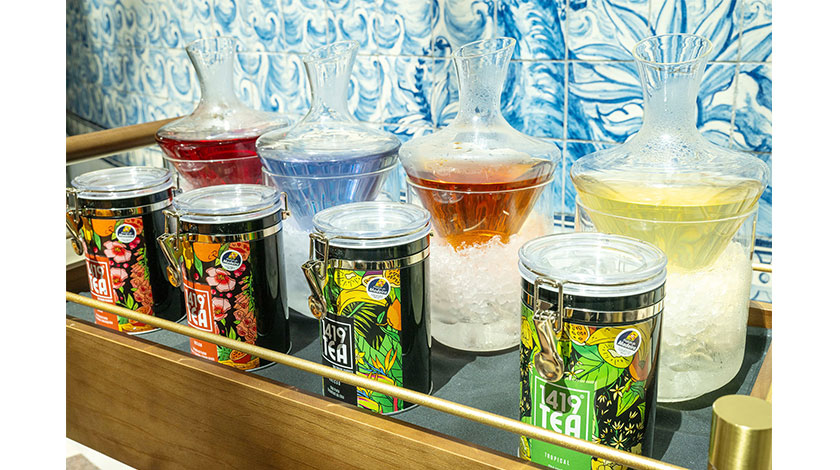 下午茶體驗套餐包括來自葡萄牙馬德拉島(Maderia)和杜羅河(Douro)的多款手工茶、傳統「馬德拉蛋糕」,以及一系列精緻鹹甜美點。茶茗選自1419 TEA®️及Infusões com História兩大葡萄牙高級茶莊,1419 TEA®️的茶茗更是首次於澳門正式面眾。擁有逾六百年歷史的1419 TEA®️品牌源自於馬德拉島,其茶葉生長於當地的獨特的火山土壤,因而富有礦物風味;Infusões com História 的茶茗則採用杜羅河的有機植物調配而成,完美呈現天然的草本風味;「馬德拉蛋糕」則遵循超過兩百年的傳統配方,以黑糖蜜、香料和堅果製成,建議賓客跟隨傳統方式用手撕成小塊食用,更具風味;賓客還可品嚐多款鹹甜美點,以及一系列的冷熱醇茶。