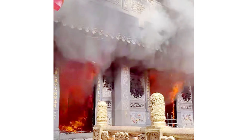 【圖片新聞】台灣雲林媽祖廟新興宮發生火災。7月28日,台灣雲林縣斗六市媽祖廟新興宮傳出火警,3樓奉祀玉皇大帝的凌霄寶殿全面燃燒,所幸火勢已經控制,無人傷亡,起火原因有待進一步調查。(香港中通社)
