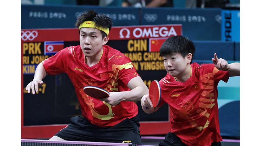 【新華社巴黎7月30日電】(記者何磊靜、岳冉冉、王昀加)30日,南巴黎競技場4號館裡一片「紅色海洋」。頭號種子王楚欽/孫穎莎4:2戰勝朝鮮組合李正植/金琴英,拿下乒乓球混雙項目金牌,這是中國乒乓球隊在巴黎奧運會上的首枚金牌,更是國乒歷史上首枚混雙奧運金牌。