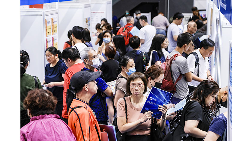 7月30日起,香港勞工處一連兩日在麥花臣場館一樓舉辦“再就業津貼試行計劃”招聘會,提供大量適合中高齡人士的職位空缺,大批市民入場參加。(香港中通社)