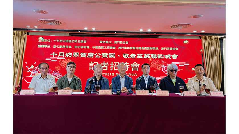 【本報訊】由十月初五街區坊眾互助會主辦、街坊總會南區辦事處、康真君廟慈善會、澳門街坊福利會、澳門中區南區工商聯會、澳門茶藝協會的協辦“十月坊眾賀康公寶誕,敬老盆菜聯歡晚會”,將於八月十日舉行,共筵開四十至五十席,藉活動傳承和發揚敬老愛老精神,提升區內凝聚力,以及盤活該區。
