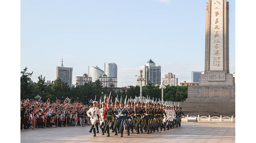 8月1日是八一 建軍節,江西南昌八一廣場舉行昇旗儀式,遊客和市民在現場觀看昇旗儀式。1927年8月1日,伴隨著南昌起義的一聲槍響,中國共產黨領導下的人民軍隊就此誕生,南昌也成為“軍旗昇起的地方”“人民軍隊的誕生地”。 中新社