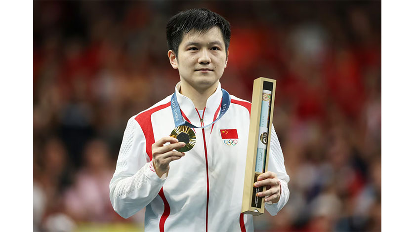 【中新社巴黎8月4日電】 (記者 王曦)4日的巴黎奧運會乒乓球男單決賽中,面對此前淘汰奪標熱門王楚欽的瑞典悍將莫雷高德,中國選手樊振東在先丟一局的情況下連勝四局,以4:1逆轉戰勝對手,拿下個人的首個奧運會乒乓球男單冠軍,完成個人職業生涯的大滿貫。