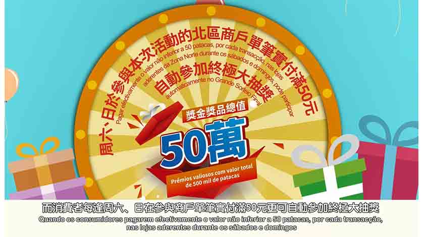 消費者於活動期間周六、日透過承辦單位電子錢包在參與商戶單筆實付滿50元,便可於活動結束後自動參加終極大抽獎。獎金獎品總值50萬元,包括現金獎、智能電話、數碼產品、家電及機票等,由澳門中華總商會及各贊助單位支持送出。