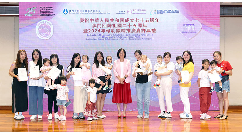 他又指出,今年上半年全澳首次預約產前檢查的孕婦共3053人,較去年同期2929人增加4.2%(上述數據包括在衛生局和鏡湖醫院預約產前檢查的人次,存在重複統計情況),按同比數據推算明年出生率將有所上升,衛生局將繼續做好為懷孕婦女提供妊娠全週期全人照顧的產前保健門診服務,確保嬰兒健康並順利出世。他期望社會各界共同在各自不同的崗位上做好母乳餵哺的宣傳推廣工作,為澳門下一代健康成長作出更大的貢獻,並向獲奬的機構/單位、支持和堅持母乳餵哺的媽媽致以崇高敬意。