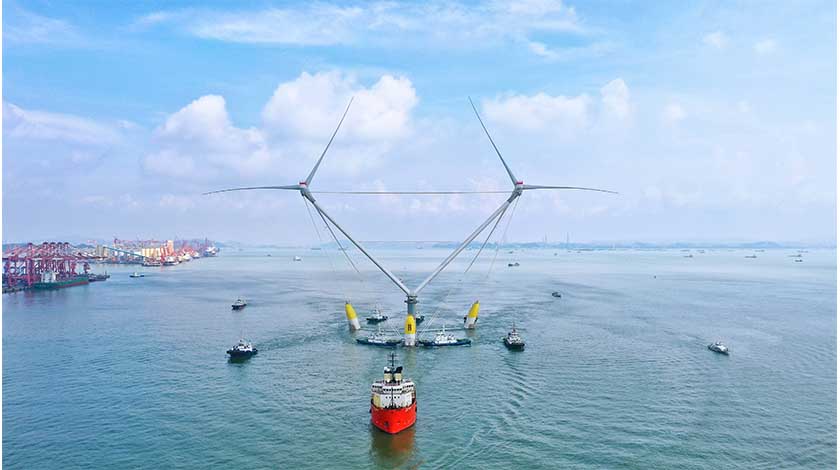全球單體容量最大的漂浮式海上風電平台從廣州拖航出港