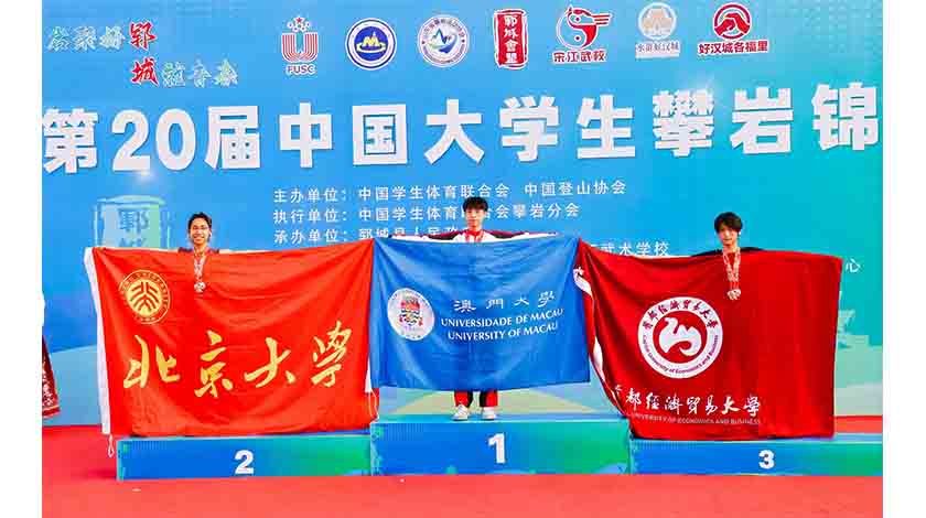 賽事由中國大學生體育協會及中國登山協會主辦,是全國重要的攀岩比賽之一。比賽設有男女子兩個組別,分為難度賽、攀石賽、速度賽、全能賽、速度接力賽、團體賽六個項目。澳大攀岩隊派出五名隊員參加了男女子甲A組的難度賽、攀石賽和團體賽。經過四天的激烈角逐,澳大科技學院、曹光彪書院的何文耀勇奪男子甲A組別攀石項目金牌,並在難度項目中獲得銅牌。此外,澳大攀岩隊在比賽中展現了頑強拼搏和團結奮進的精神,最終在團體總積分中排名第五。
