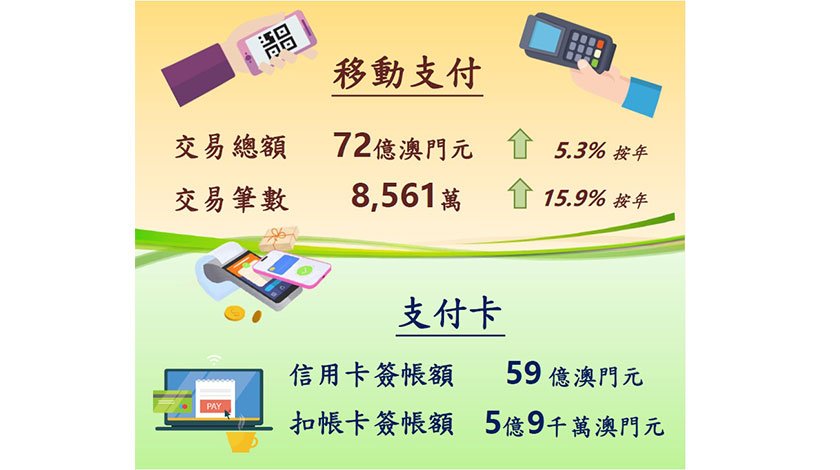 本地移動支付工具於2024年第二季的交易筆數為8561萬宗,按年上升15.9%;交易總額為72億元(澳門元,下同),按年增加5.3%,每筆交易的平均金額為83.8元。截至2024年6月底,本地受理移動支付的機具及二維碼立牌數量為102667個。