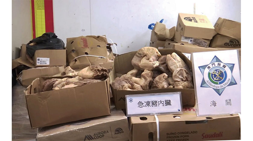 由於該批急凍豬內臟存放室溫環境,溫度不足,存在食安風險不宜食用,海關已通報市政署跟進。