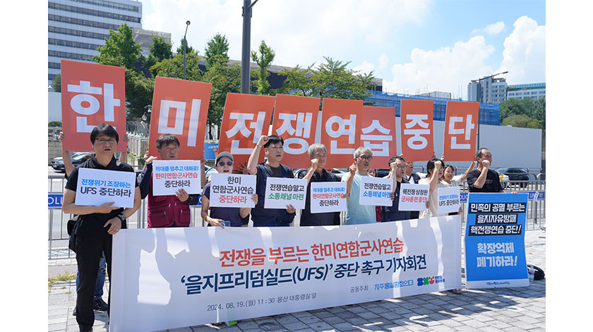 集會團體在當天發給媒體的資料中說,韓美聯合軍演會增加朝鮮半島和東北亞地區出現戰爭危機和核危機的風險,應該停止以整個民族的生命和財產為代價的軍事演習,停止韓朝間一切敵對政策和軍事行動,營造對話環境,恢復溝通渠道。