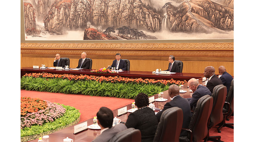 8月20日,中國國家主席習近平在北京人民大會堂集體會見出席全國人大加入各國議會聯盟40周年紀念活動暨第六次發展中國家議員研討班外方議會領導人。中新社