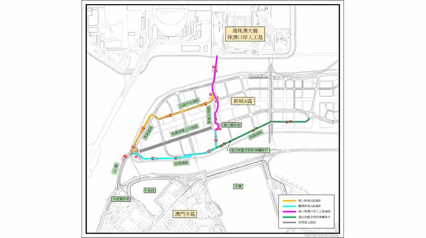 【特訊】新城A區東側道路將於2024年8月25日開通,屆時由澳門半島進入港珠澳大橋珠澳口岸人工島的車輛需使用東側道路,而目前用作進入港珠澳大橋珠澳口岸人工島及新城A區的馬萬祺博士大馬路施工期間將全面封閉(詳見附圖),是次的交通通行措施主要是配合新城A區的規劃及發展,同時為下一階段在馬萬祺博士大馬路進行共同管道及道路施工創造條件,請駕駛者留意現場交通指示及改道後的行車路線。