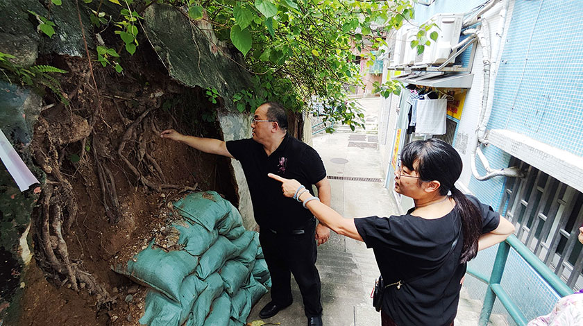近期天雨頻密,加上植物生長,導致夯土牆沙土流失出現破裂,現時行人經過都需要特意避開,以防發生意外。因此坊會促請當局盡快修補夯土牆,防止牆壁進一步惡化倒塌,保障居民出行安全。