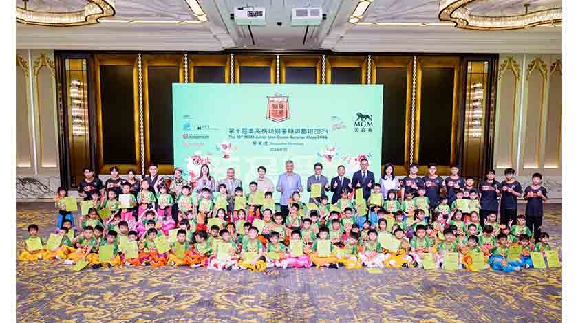 第十一屆「獅王爭霸國際賽2024 — 美高梅盃」新聞發佈會暨第十屆「美高梅幼獅暑期興趣班2024」畢業禮8月31日於美獅美高梅舉行,會上宣佈本屆獅王爭霸國際賽將於10月5至6日假媽閣廟前地盛大開鑼,同場也為本年度幼獅暑期興趣班的100名學員舉行畢業禮。活動主禮嘉賓包括:澳門特區文化局局長梁惠敏,旅遊局代局長程衛東,體育局澳門格蘭披治大賽車及大型體育活動廳代廳長黃家權,教育及青年發展局小學及幼兒教育處處長賈詩燕,海事及水務局海事博物館館長薛啟善,亞洲龍獅運動聯合會主席及澳門武術總會理事長陳永傑,和美高梅中國控股有限公司總裁及首席營運官王志琪。