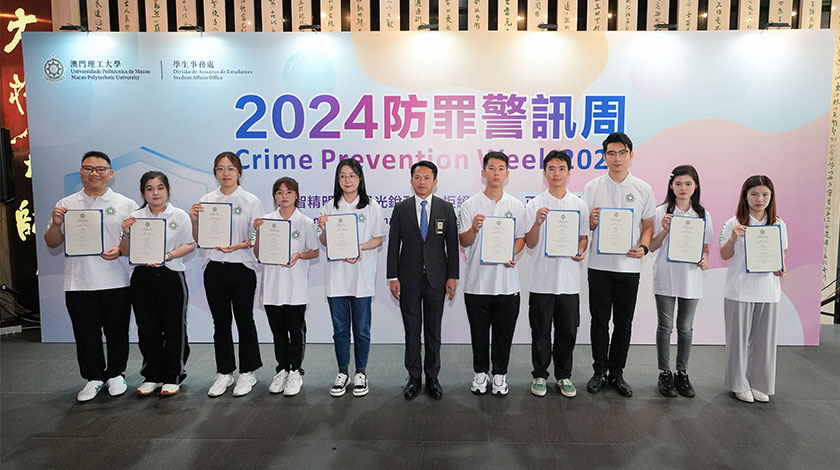 在一眾嘉賓、師長和同學的見證下,20位澳門理工大學學生進行莊嚴宣誓,承諾肩負起“防騙大使”的職責,謹守法律,以身作則,並以理智思維和積極態度在校園推行防騙宣傳工作,與師長和同學們攜手共築校園安全網絡。其後李雁蓮校長及蘇兆強副局長頒發“防騙大使”委任狀,並勉勵他們自強不息,努力成為青年群體的防騙楷模,既要不斷提高自身的防騙水平,亦要主動發揮同輩間的正面影響力,在校園內營造積極反詐的氛圍,帶動同學正視防騙工作,為守護校園安全貢獻力量。
