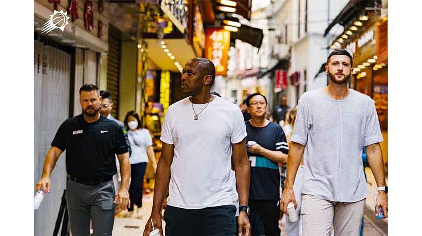 【特訊】金沙旅享於本週較早時在澳門金沙度假區驚喜迎來首次到訪澳門的四位鳳凰城太陽隊球員,包括已退役的傳奇球員雷克斯-查普(Rex Chapman)、塞德瑞克•Z•塞巴洛斯(Cedric Z. Ceballos)及詹姆士•瓊斯(James Jones),以及現役球員尤瑟夫•諾基奇(Jusuf Nurkić)。四位籃球明星在澳門首屈一指的綜合度假村——澳門金沙度假區盡情享受奢華的度假體驗及品嚐環球佳饌,感受了度假區的無限精彩,為他們的澳門之行留下了精彩篇章。
