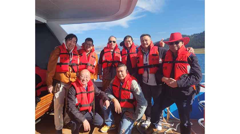 澳門參訪團走進賽裡木湖,首先映入眼簾的是那清澈見底的湖水,仿佛一塊巨大的翡翠鑲嵌在群山之間。四周群山環繞,與碧藍的湖水相映成趣,構成一幅絕美的山水畫卷。澳門團員還登遊船、攬勝景,並欣賞富有新疆特色的歌舞表演。