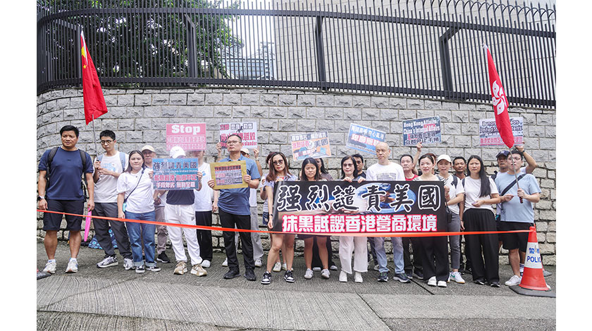 有市民團體當天前往美國駐港總領館抗議,強烈譴責美國抹黑詆毀香港營商環境。