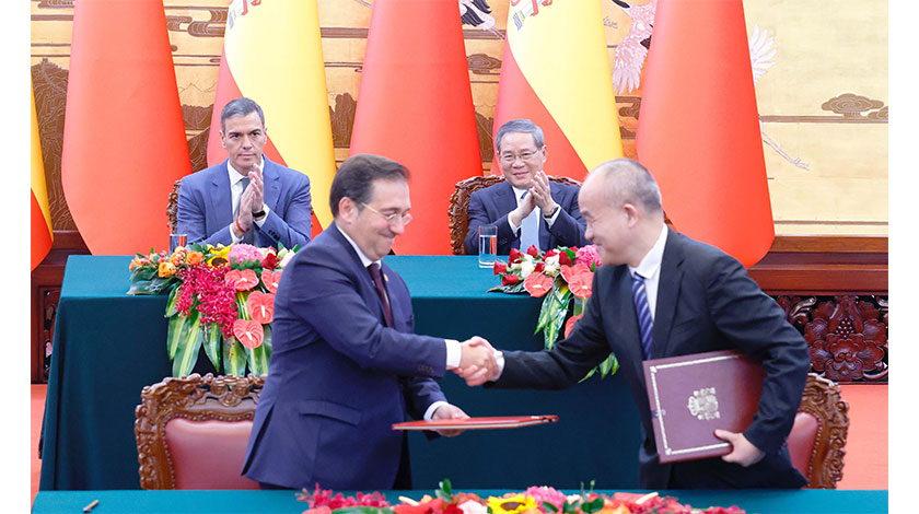 9月9日,中國國務院總理李強在北京人民大會堂同來華進行正式訪問的西班牙首相桑切斯舉行會談。會談後,兩國領導人共同見證簽署經濟、文化、教育、科技等領域多項雙邊合作文件。 中新社