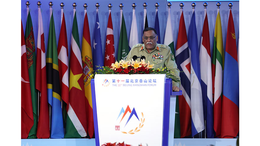 圖為巴基斯坦參聯會主席薩希爾上將,在主題為“安全合作與亞太繁榮穩定”的全體會議上發言。 中新社