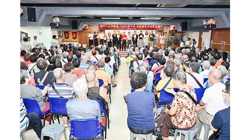 【特訊】澳門三水同鄉會於9月13日舉辦『2024賀中秋.迎國慶敬老聯歡會』活動,場地獲澳門江門同鄉會借出禮堂,並得澳娛綜合度假股份有限公司贈送月餅給70歲以上長者會員。當日出席嘉賓包括三水區委統戰部常務副部長劉勁濤,澳門立法會議員鄭安庭、羅彩燕,澳門江門同鄉會理事長夏俊英、澳門經濟民生聯盟主席劉家裕,澳娛綜合福諮會文康社會事務及企業社會事務助理總監林淑源,澳門三水同鄉會會務顧問董自強,理事長劉藝良,監事長黎亮,副會長陸世安、張乃文、楊志忠、黃鴻翔,澳門三水青年協進會會長凌家珍等。並由出席嘉賓向長者們致送月餅及利是。