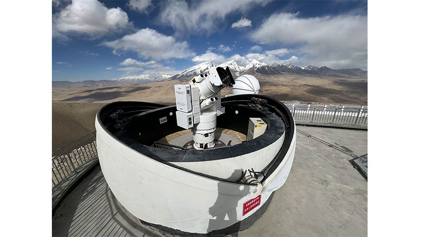 9月15日,中國首個業務化運行的激光通信地面站在新疆帕米爾高原一處海拔4800米山頂建成,圖為9月10日採訪拍攝的該站,遠處雪山為慕士塔格峰。 中新社