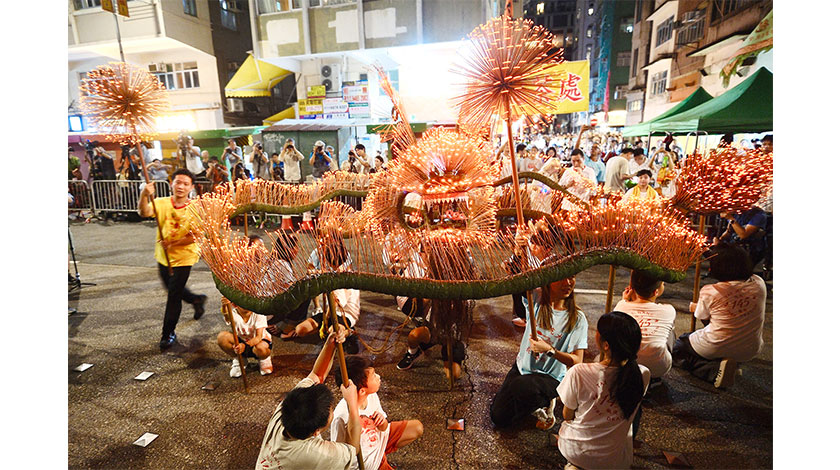 【圖片新聞】101香港大坑舞火龍舉行,百名小朋友共舞LED小火龍。9月16日是中秋迎月日,香港傳統民俗活動大坑舞火龍當晚起一連三晚舉行。每年中秋節,大坑街頭都因舞火龍而熱鬧非凡。這項傳統可追溯至19世紀,當時居民以插滿線香的火龍驅趕疫症,這份團結精神一直傳承至今。圖為今年加入由大約100名小朋友舞動長達20米的LED小火龍。(香港中通社)
