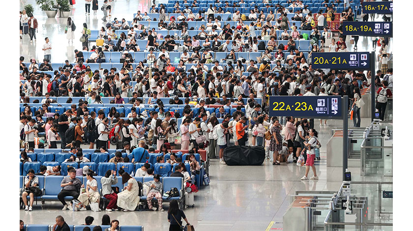 9月17日,旅客在貴陽北站候車大廳候車。當日是中秋假期最後一天,位於貴陽市觀山湖區的貴陽北站迎來返程客流。 中新社