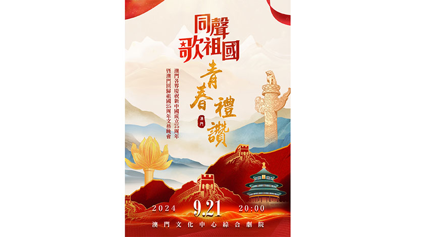【特訊】今晚9月21日晚八點,在澳門文化中心綜合劇院將上演由澳門13家社團共同主辦的“同聲歌祖國:青春禮讚——澳門各界慶祝新中國成立75周年暨澳門回歸祖國25周年文藝晚會”,為祖國、為澳門獻上青春的祝福。