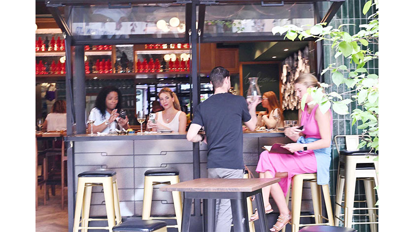 【圖片新聞】香港西環老街區新色彩。9月22日,西環一處酒吧。香港港鐵自從2014年底從上環向西延伸,增設了西營盤、香港大學及堅尼地城三站,西區隨之成了炙手可熱的地段。便捷的交通為這一區帶來了諸多變化 —— 舊區得到了翻新改造,居住的外籍人士越來越多、 摩登的餐廳酒吧紛紛入駐。隨著訪港遊客興趣從購物轉變深度遊,中上環成為不少遊人在週末和節假日到此打卡休閒的好去處。漫步於西區,現代化的高樓大廈中仍然保留歷史和傳統。海味街經營了幾十年的乾貨店,至今依舊生意興旺。在上環遊人能夠享受時尚與傳統的融合,感受香港的多面風情。(香港中通社)