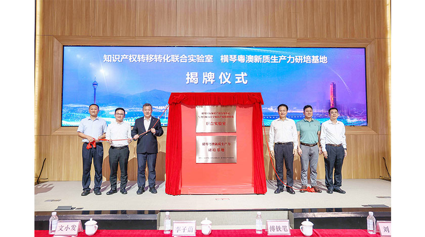 【特訊】橫琴國際知識產權交易中心與澳門城市大學知識產權轉移轉化聯合實驗室揭牌儀式9月26日在橫琴國際知識產權交易中心舉行。廣東省市場監督管理局二級巡視員傅鐵筆、橫琴粵澳深度合作區經濟發展局局長李子蔚、城大校長劉駿、澳門數字文化科技協會會長張森華、橫琴國際知識產權交易中心董事長夏德興出席活動並致辭。活動還邀請了來自多個城市市場監督管理局、知識產權保護中心的領導和代表出席。