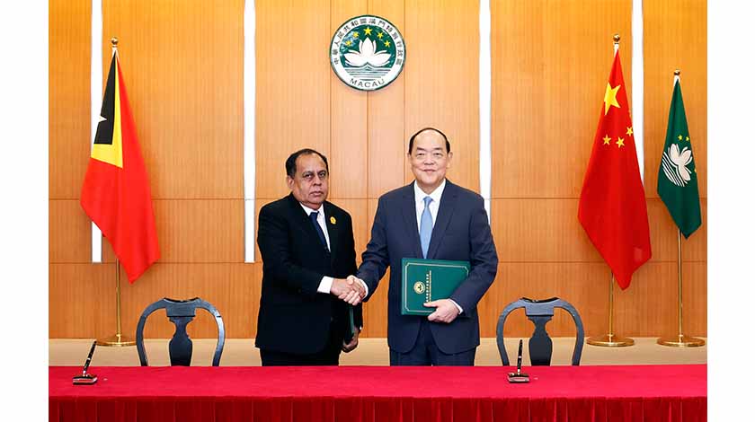 他又表示,澳門和帝力市簽署《締結友好城市諒解備忘錄》,進一步鞏固和加強彼此間的友好關係,雙方以此為契機,繼續拓展兩地在經貿、旅遊、文化、民間交往等領域的合作。澳門將充分發揮 “中國與葡語國家商貿合作服務平台”的作用,依託中葡論壇等機制,增進與東帝汶交流,並歡迎東帝汶通過中葡論壇,參與澳門及橫琴粵澳深度合作區的發展和建設,拓展同粵港澳大灣區的合作。