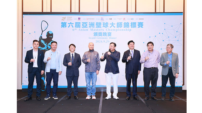 【特訊】為慶祝澳門特別行政區成立二十五週年,由澳門壁球總會主辦的「第6屆亞洲壁球大師錦標賽 2024」已於9月26日至9月29日在澳門路氹體育館大馬路保齡球中心舉行。賽事自2019年後首次在本澳舉行,被評定亞洲壁球聯會認可之錦標賽賽事,吸引超過多名分別來自中國、中國香港、中華台北、巴基斯坦、印度、韓國、新加坡、馬來西亞、伊拉克、蒙古及主辦方中國澳門,共11個國家/地區的世界頂級大師級球員參與競逐10個分齡組別錦標。