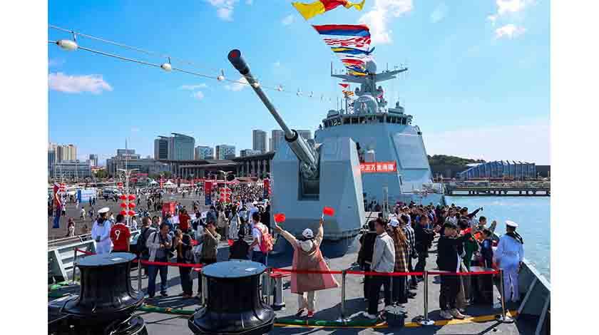 人民海軍首次在國慶假期成規模組織艦艇開放活動。10月1日,在山東青島參加海軍艦艇開放活動的民眾登艦參觀。新華社