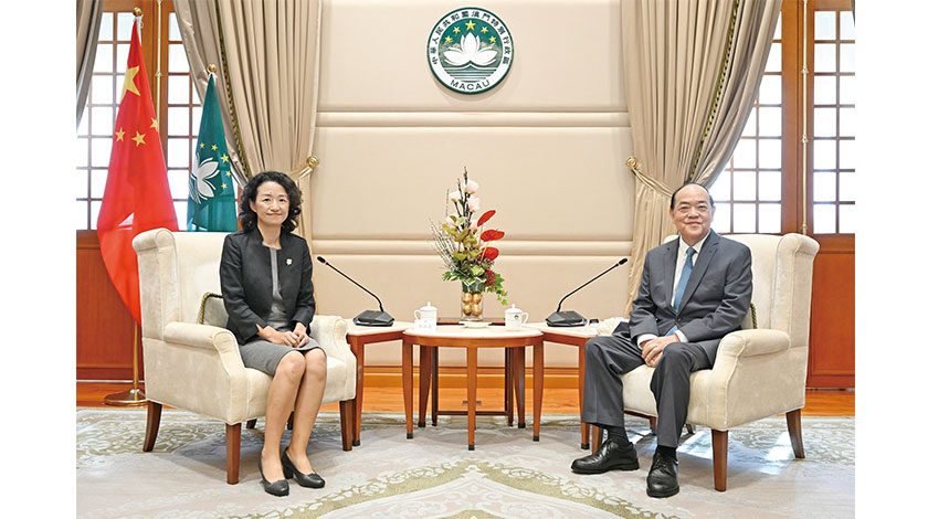 【特訊】行政長官賀一誠昨日在政府總部會見商務部國際貿易談判副代表李詠箑一行,雙方就進一步落實《內地與澳門關於建立更緊密經貿關係的安排》(CEPA)及系列補充協議、推動澳門經濟適度多元發展合作等議題交換意見。