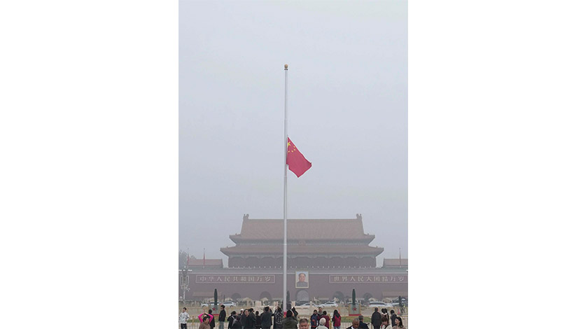 10月14日,為悼念吳邦國同志,首都天安門下半旗誌哀。新華社