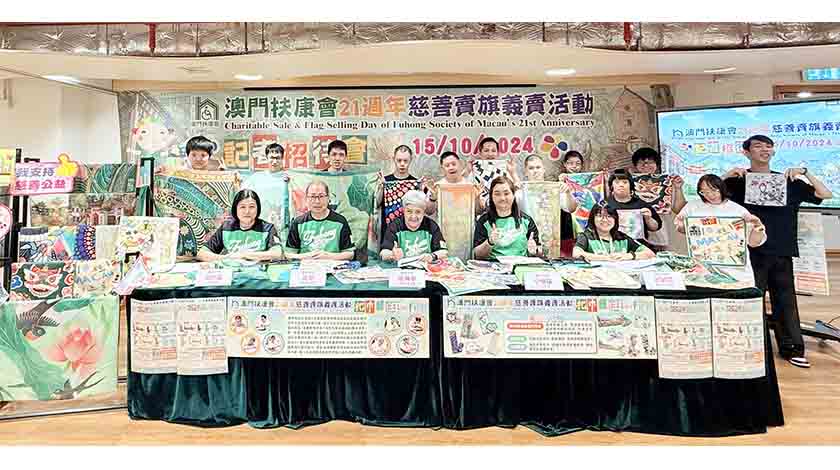 【特訊】澳門扶康會於2024年10月15日下午三時在轄下寶利中心舉行《澳門扶康會二十一週年慈善賣旗義賣活動》,冀望通過賣旗活動為殘疾人士、弱勢群體及有需要的人士提供支持和幫助。會員大會飛迪華主席、理事會黃濠副主席及周惠儀總幹事、卓敏儀行政經理及寶利中心余展熒經理為到場媒體一一介紹活動細項。