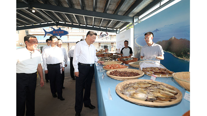 15日下午,習近平首先來到漳州市東山縣考察。該縣東南部的陳城鎮澳角村三面臨海,近年來走出一條以海興村、以海強村的新路子。習近平步行察看澳角灣海域環境和村容村貌,詳細瞭解海鮮乾貨和漁獲產品交易情況。得知不少海產品購銷兩旺,村民收入不斷增加,習近平很高興。他對紛紛圍攏過來的村民和漁民們說,你們村我23年前來過,至今記憶深刻。這次來看到村裡發生了很大變化,很是欣慰、很有感慨。新時代新征程農村一定會有更加光明的前景,農民會有更加火熱的生活。村級黨組織要發揮火車頭作用,帶領鄉親們做好“海”的文章,在鄉村振興、共同富裕的道路上一往無前。