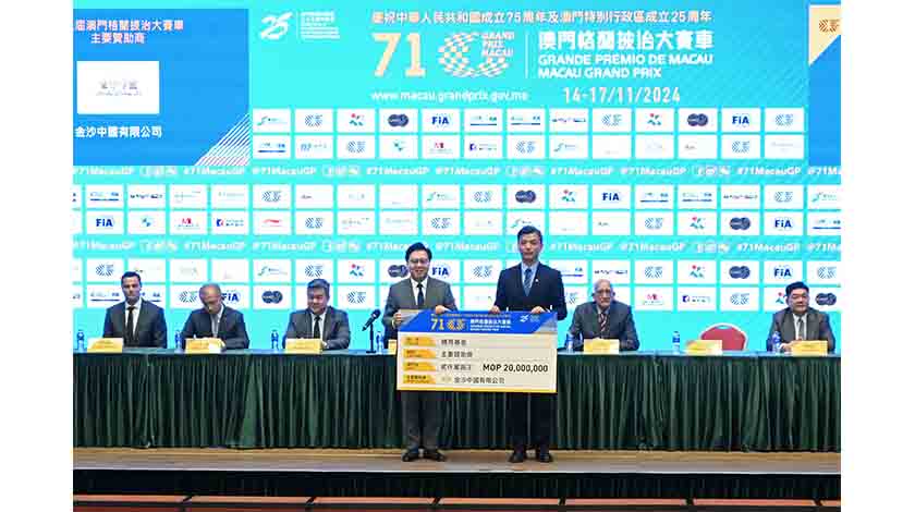 大賽車續獲六博企支持,會上進行支票遞交儀式。澳娛綜合、銀河娛樂、金沙和美高梅為主要贊助商,四企各出二千萬元,而新濠博亞和永利則為特級贊助商,兩各出一千萬元,即合共一億元。上屆六博企則是每間均贊助二千萬元,合共一億二千萬元。