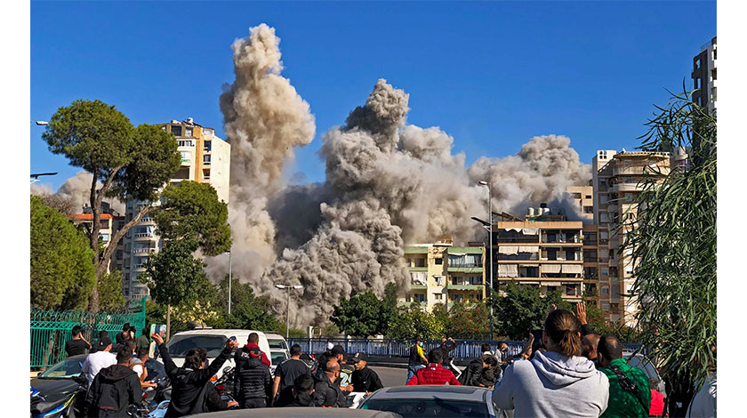這是10月22日在黎巴嫩貝魯特南郊拍攝的以軍空襲現場。新華社