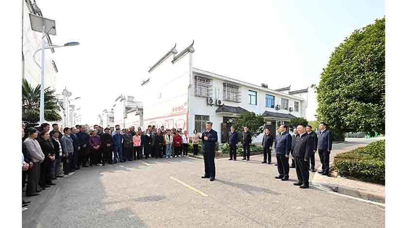 11月4日下午至5日上午,中共中央總書記、國家主席、中央軍委主席習近平在湖北省孝感市、咸寧市考察調研。這是習近平在咸寧市嘉魚縣潘家灣鎮四邑村考察時,同村民們親切交流。新華社