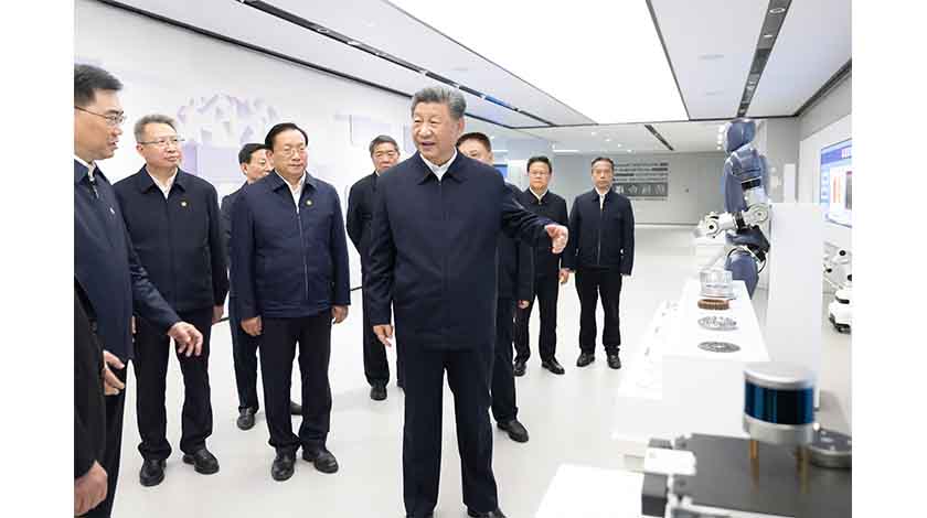 11月4日至6日,中共中央總書記、國家主席、中央軍委主席習近平在湖北考察。這是5日下午,習近平在武漢產業創新發展研究院考察。 新華社