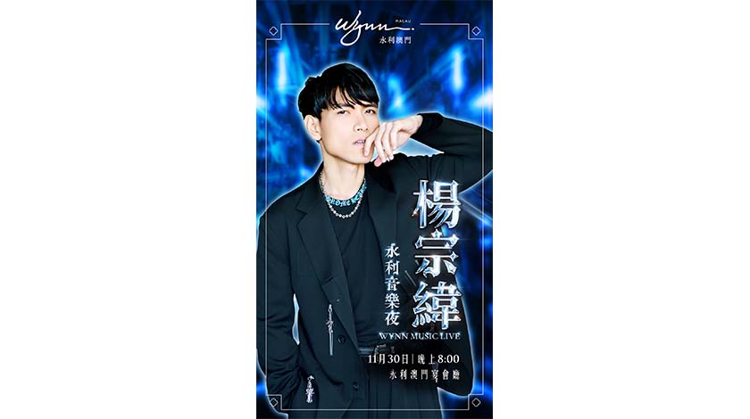 【特訊】永利澳門將於11月30日呈獻楊宗緯「永利音樂夜」,華語樂壇實力唱將楊宗緯將獻唱多首經典情歌及與歌迷們零距離互動,為觀眾帶來一場無與倫比的視聽享受。