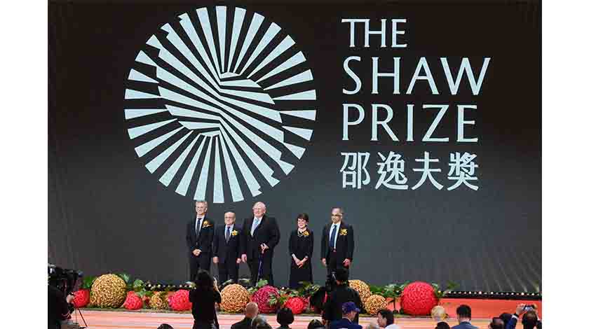 11月12日,2024年度邵逸夫獎頒獎禮在香港會展中心舉行,今年一共有五名科學家來港接受獎項,包括四位2024年度邵逸夫獎得獎者以及一位2021年度得獎者。2024年度得獎者,包括天文學獎得獎主史里尼瓦斯・庫爾卡尼(右一)、生命科學與醫學獎得獎主鄧瑞麗(右二)和斯圖爾特・奧金(左二),以及數學科學獎得獎主彼得・薩納克(左一),由邵逸夫獎評審會主席萊因哈德•根舍(中)頒獎。(香港中通社)